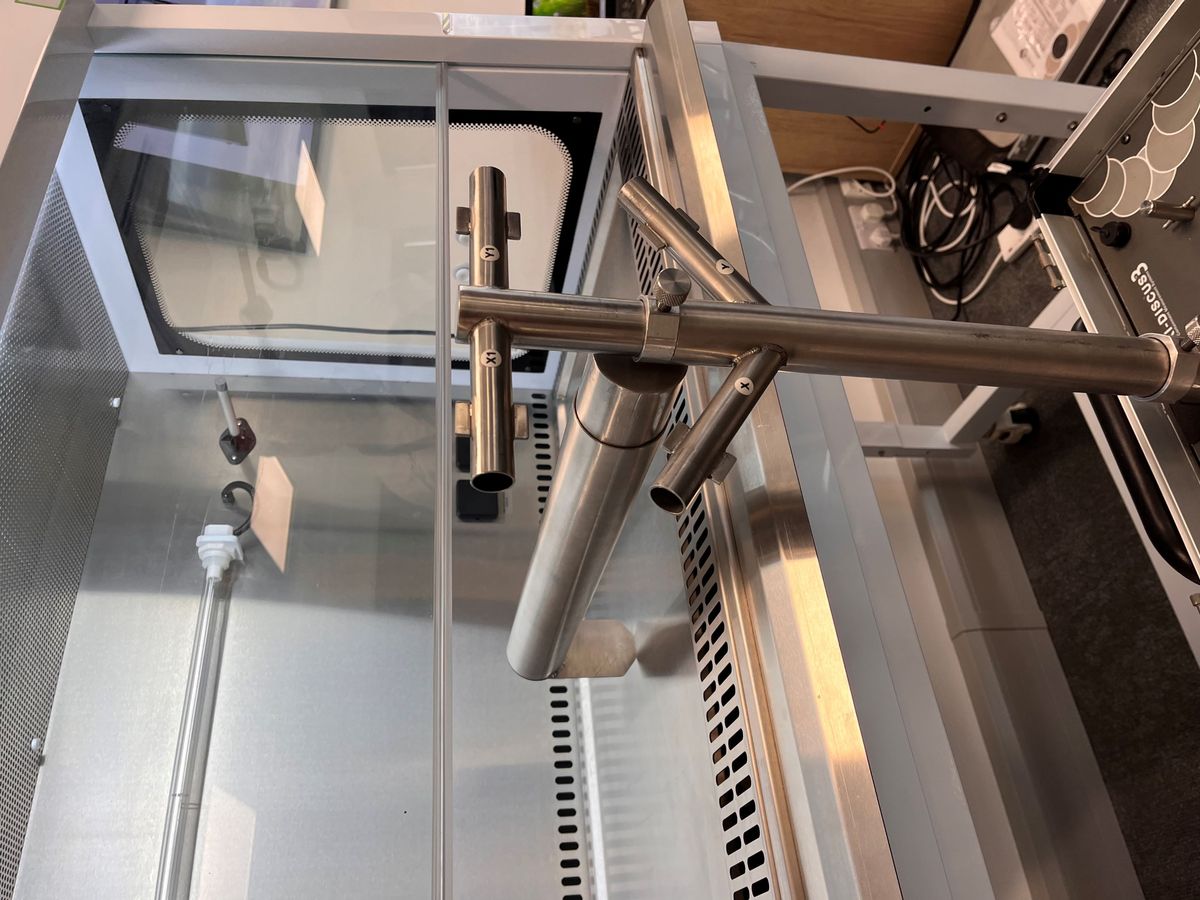 Een fijne aerosol van kaliumjodidedruppeltjes, geproduceerd door een verstuiver, wordt gebruikt als een uitdaging aerosol om de inperking van een kast (of zuurkast) te meten. Vier sensorkoppen bemonsteren de lucht buiten (of binnenin de kast - afhankelijk van de aard van de test) en deponeren alle kaliumjodidedeeltjes die in de bemonsterde lucht zitten op filtermembranen. Aan het einde van de bemonsteringsperiode worden de filtermembranen in een oplossing van palladiumchloride geplaatst, waarna het kaliumjodide zich “ontwikkelt” tot duidelijk zichtbare en gemakkelijk te identificeren bruine stippen van palladiumjodide.
